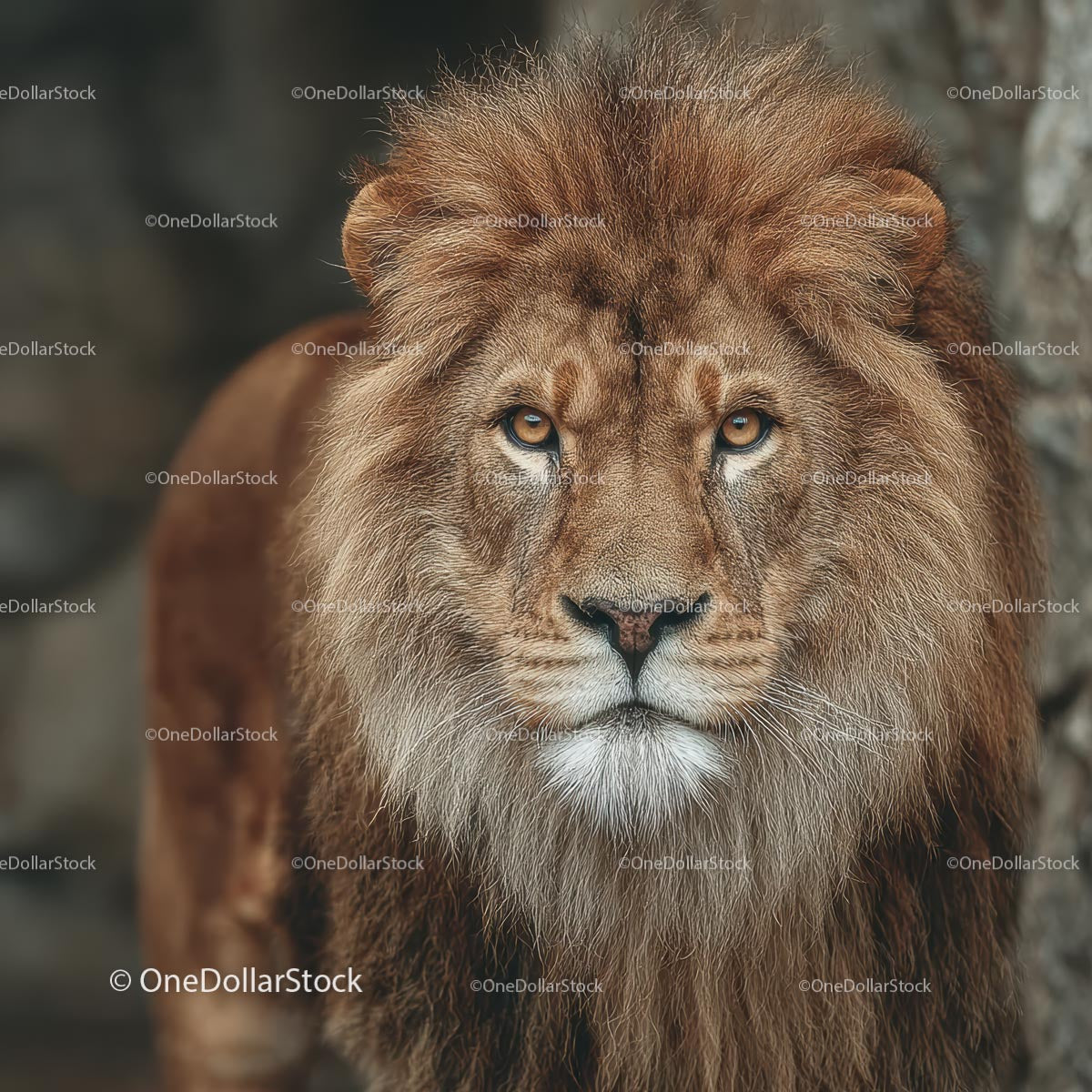 Majestatyczny lew z królewską grzywą na pustkowiu