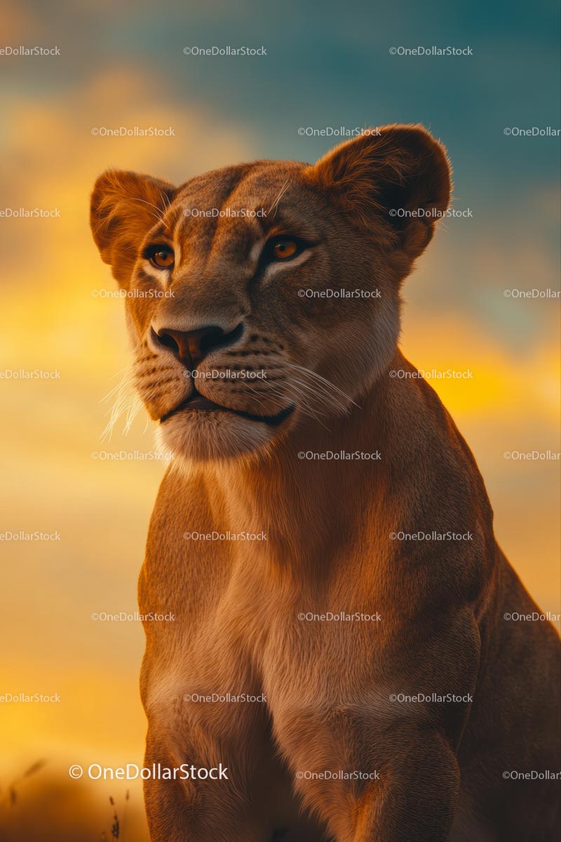 Majestatyczna lwica o zachodzie słońca na afrykańskim pustkowiu