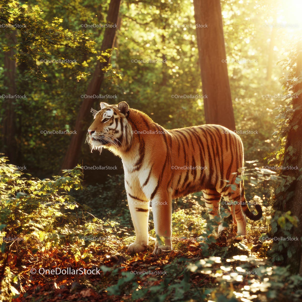 Majestatyczny tygrys skąpany w słońcu w bujnym lesie