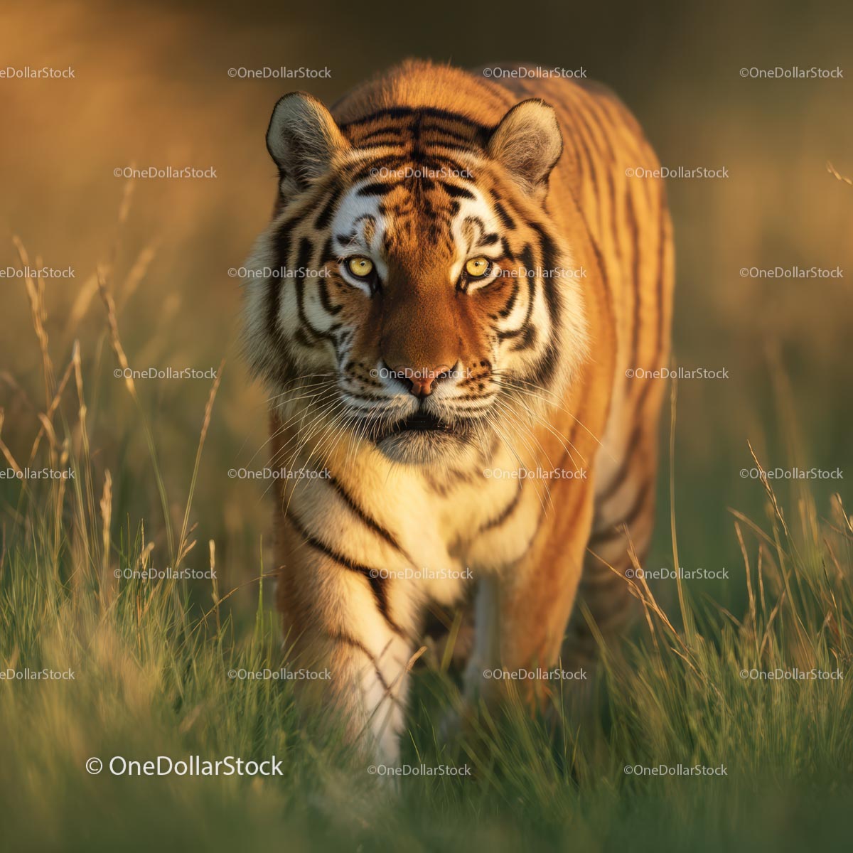 Majestatyczny tygrys w naturalnym środowisku trawiastym