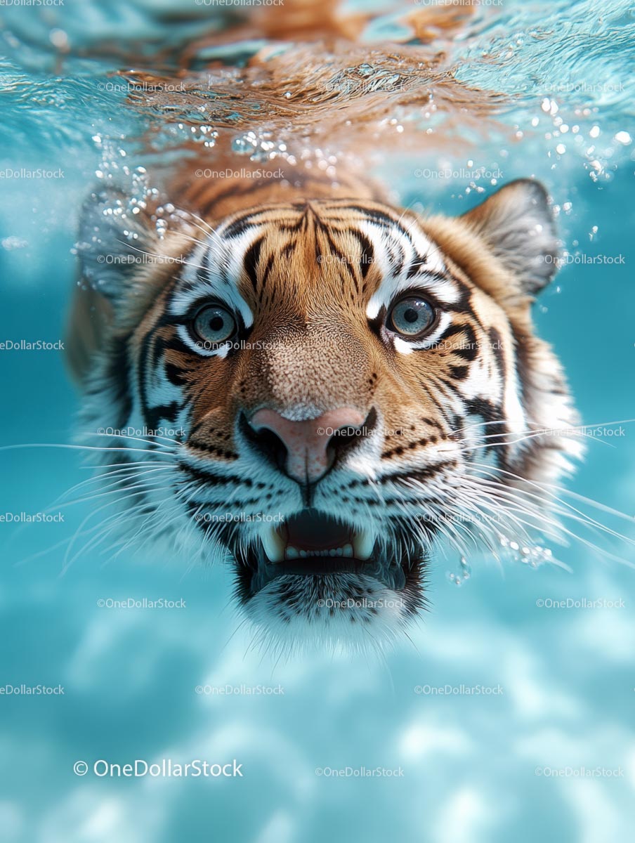 Majestatyczny tygrys pływający pod wodą w czystym błękicie