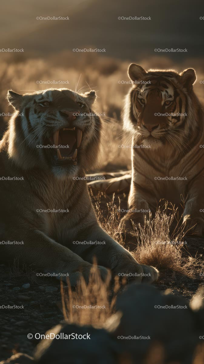 Majestatyczne tygrysy na słonecznych trawiastych równinach