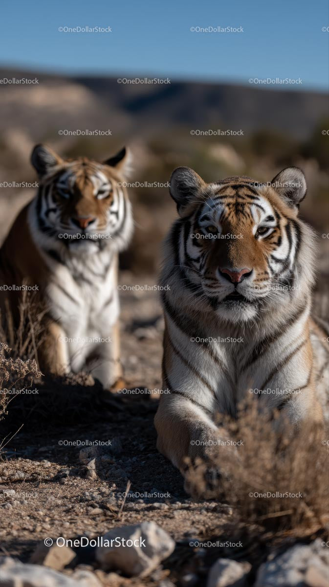 Majestatyczne tygrysy odpoczywające w krajobrazie pustyni
