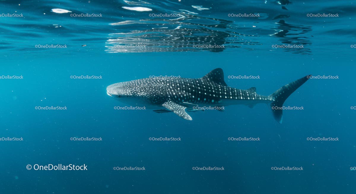 Majestatyczny rekin wielorybi w spokojnych błękitnych wodach