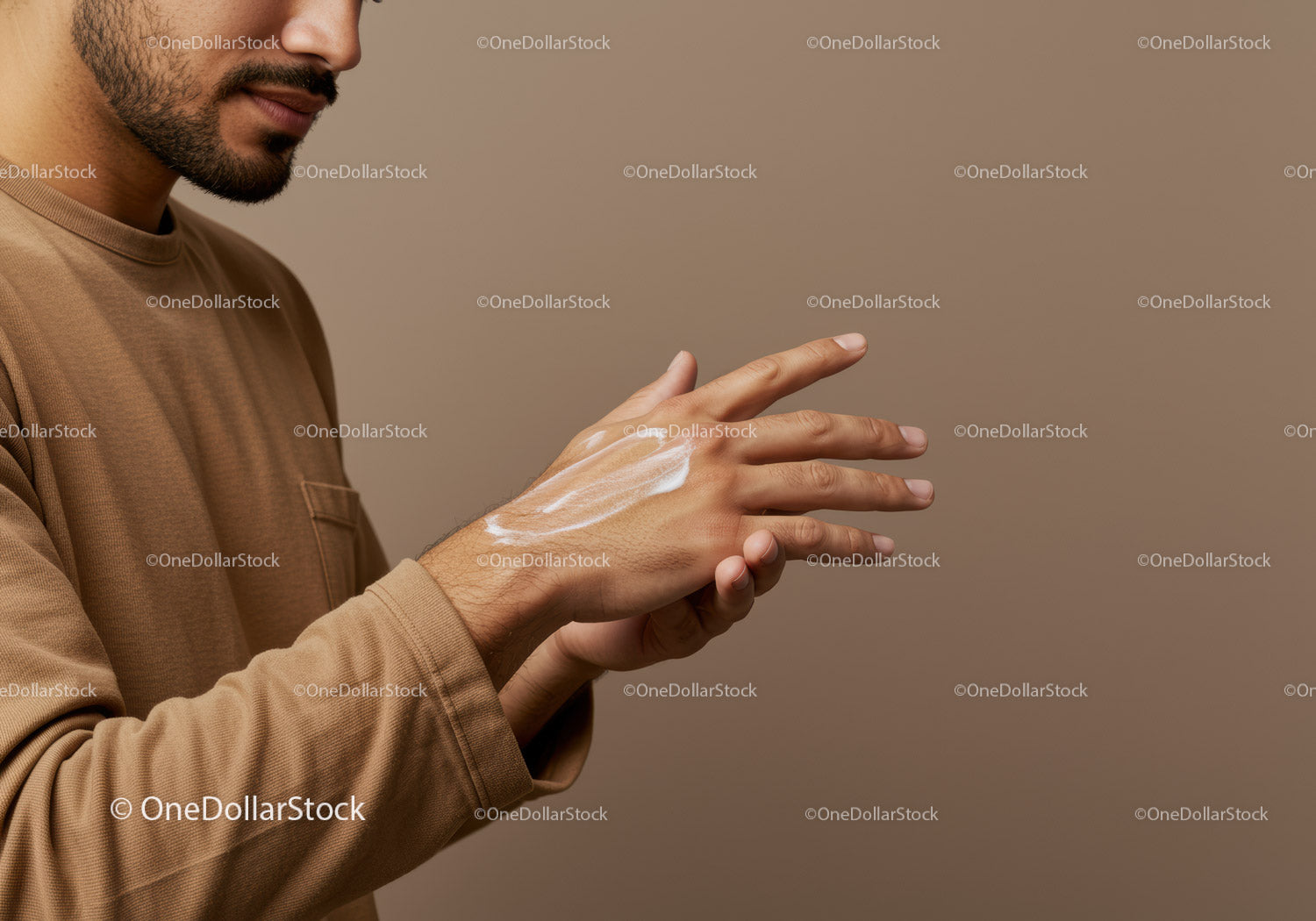 Mężczyzna nakładający krem z filtrem przeciwsłonecznym na dłoń w celu ochrony skóry