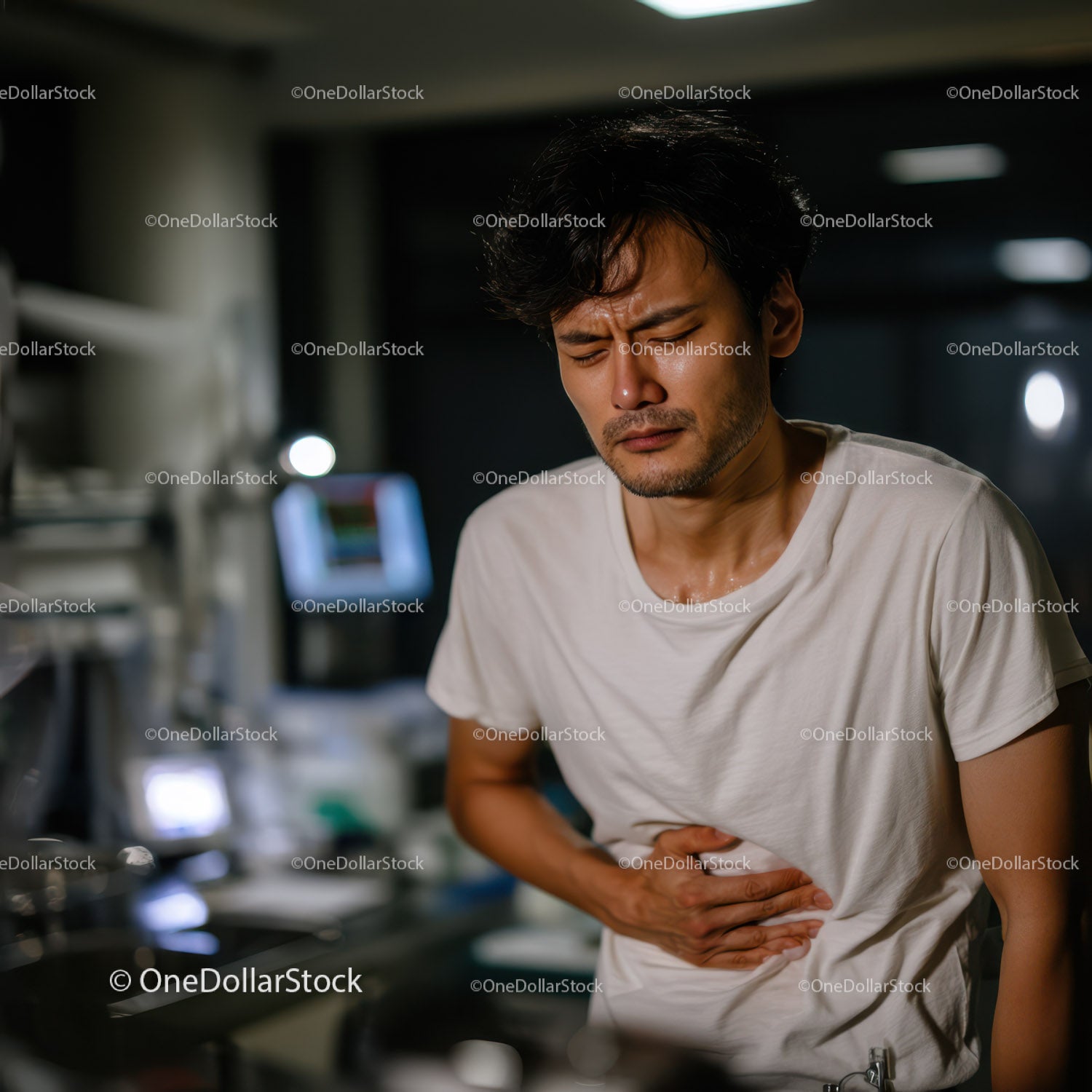 Mężczyzna odczuwający ból brzucha w placówce służby zdrowia