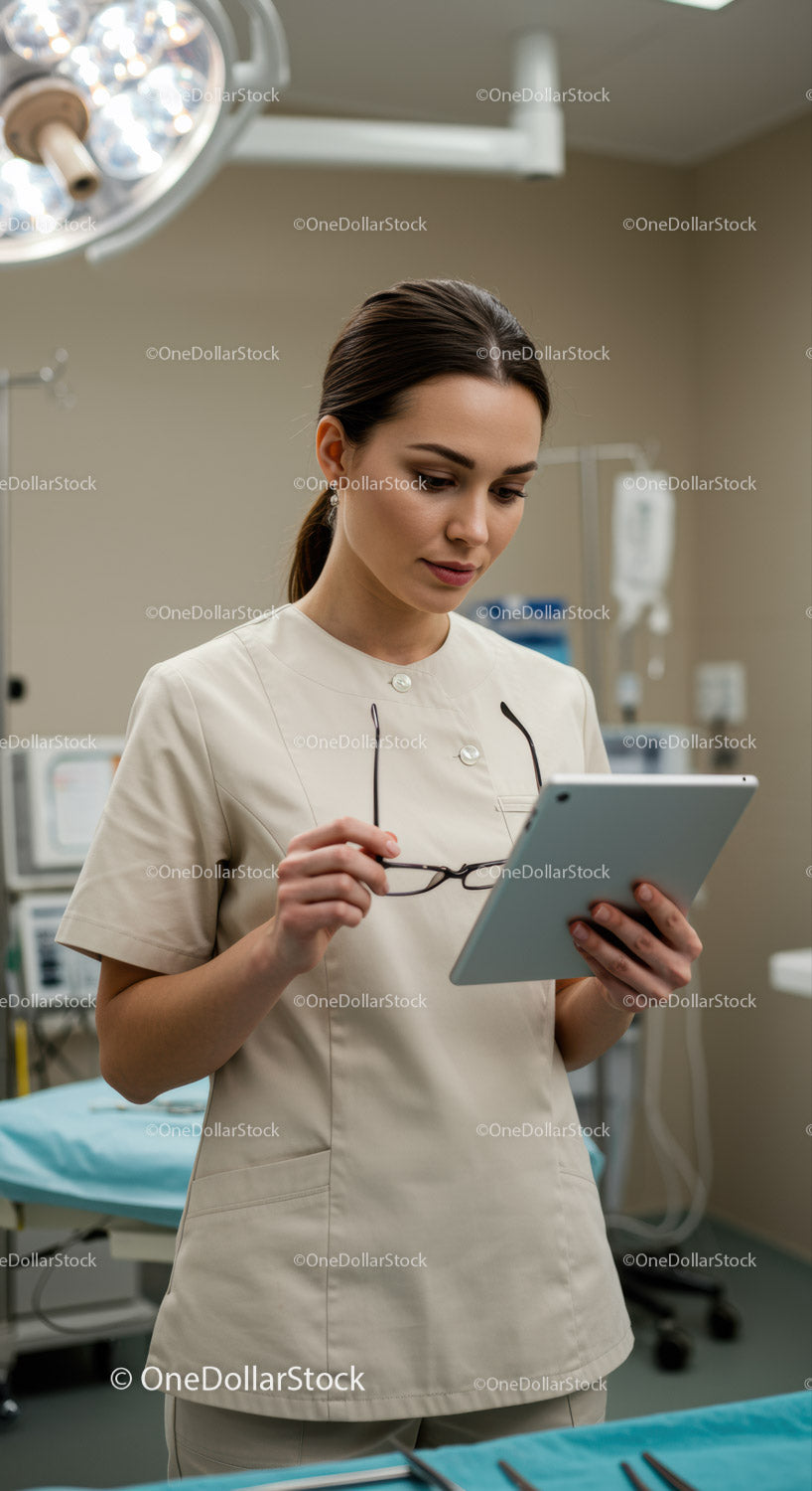 Nowoczesna pielęgniarka korzystająca z tabletu cyfrowego w klinice szpitalnej