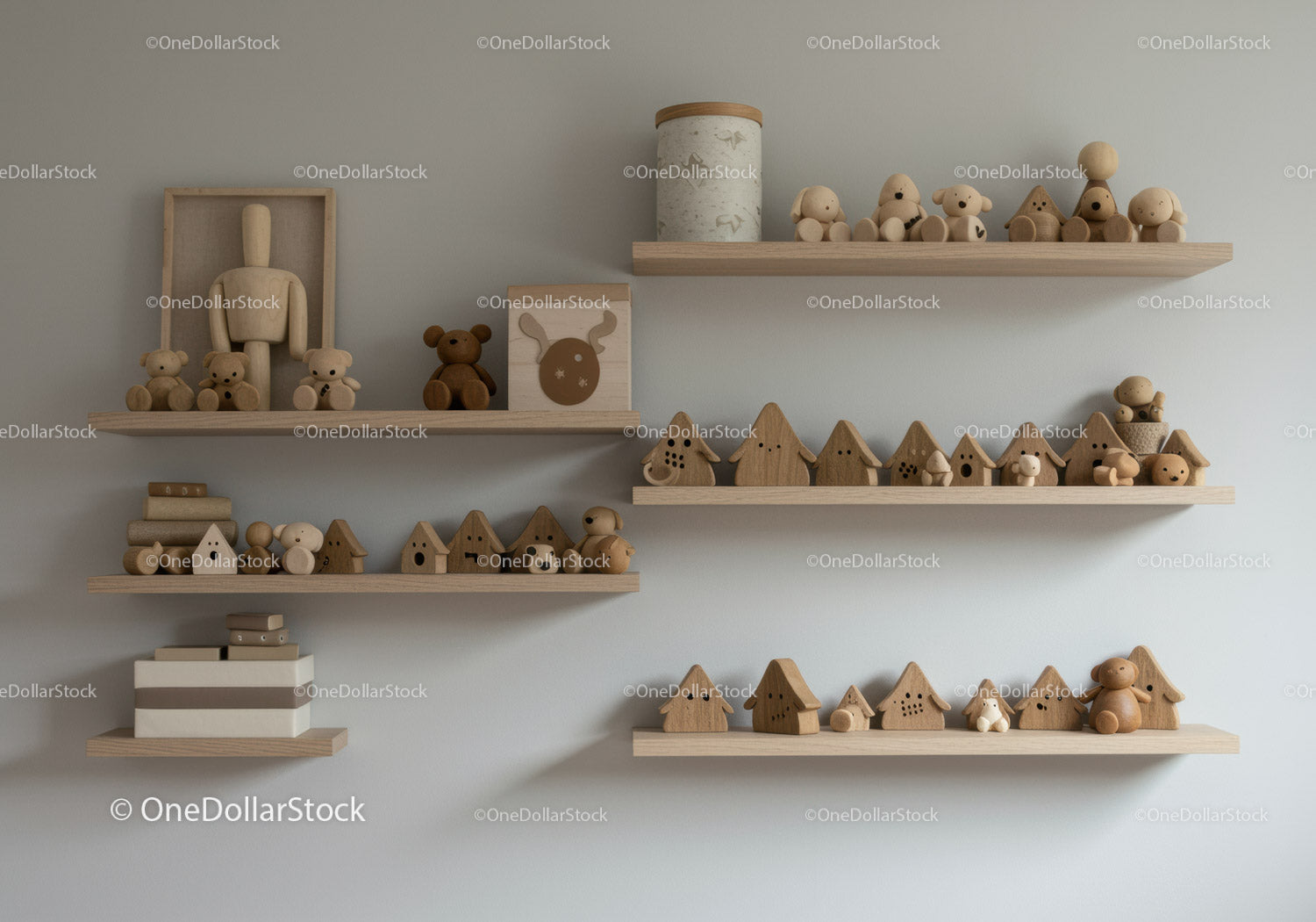 Naturalne drewniane zabawki dla niemowląt i wystrój pokoju dziecięcego w przytulnym skandynawskim stylu