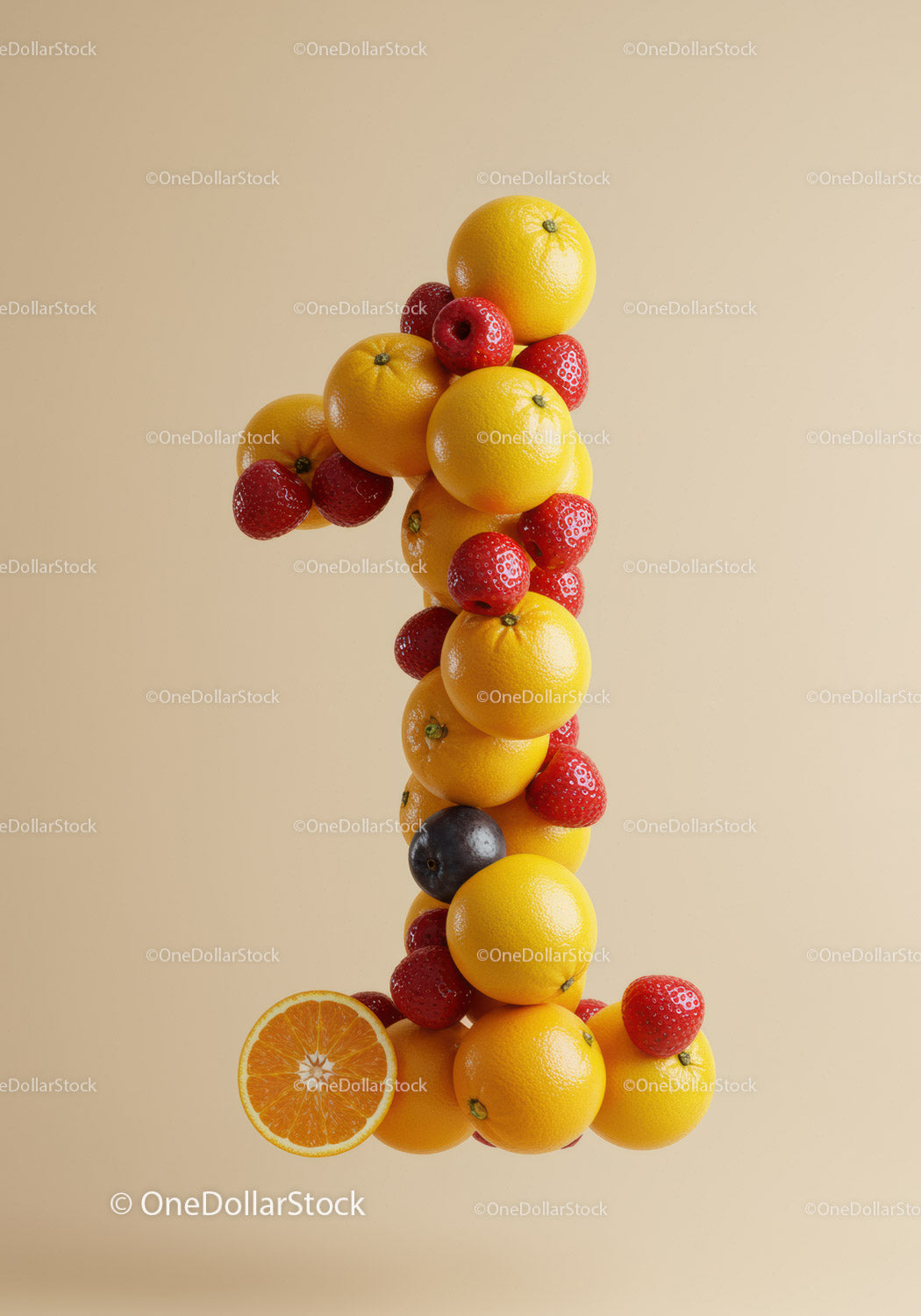 Numer jeden w kształcie świeżych pomarańczy i truskawek