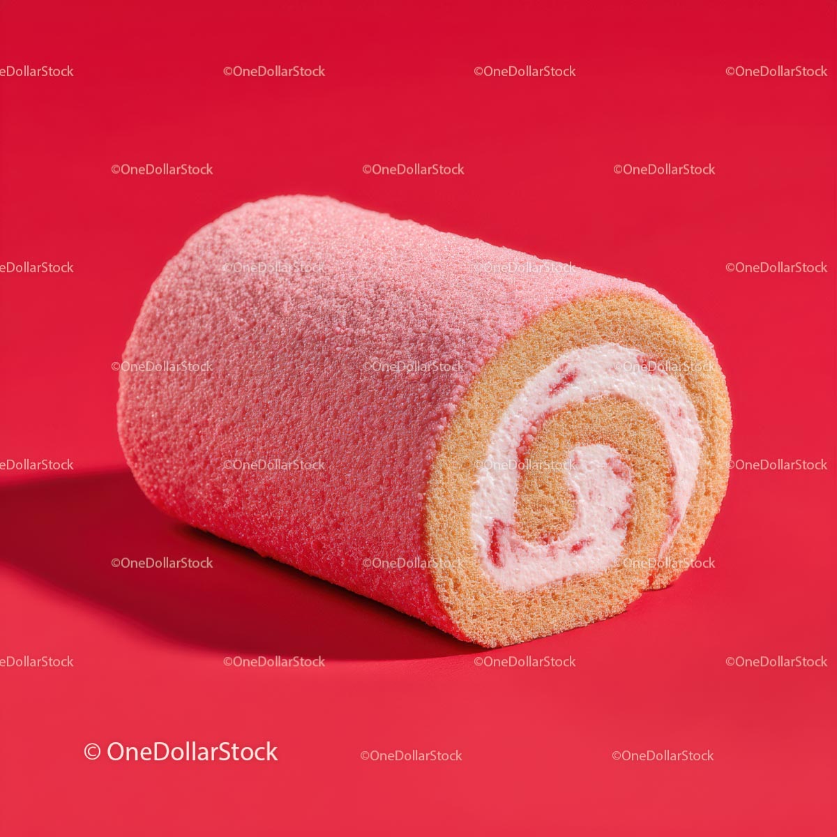 Różowe ciasto szwajcarskie na jaskrawoczerwonym tle