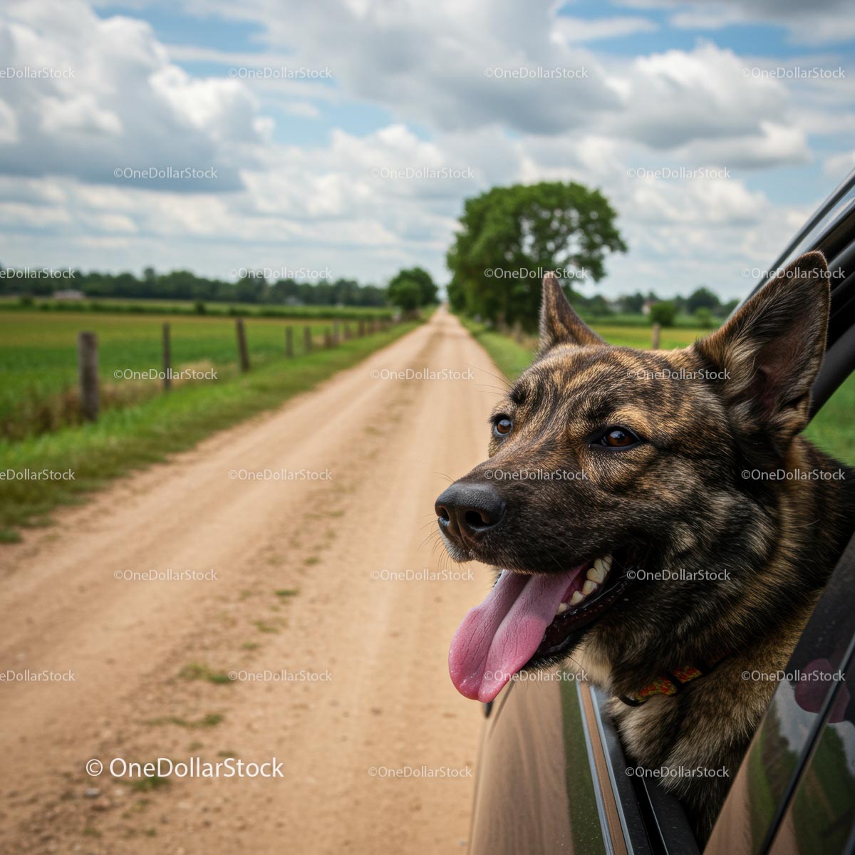 Zabawny pies cieszy się wycieczką po wiejskiej drodze