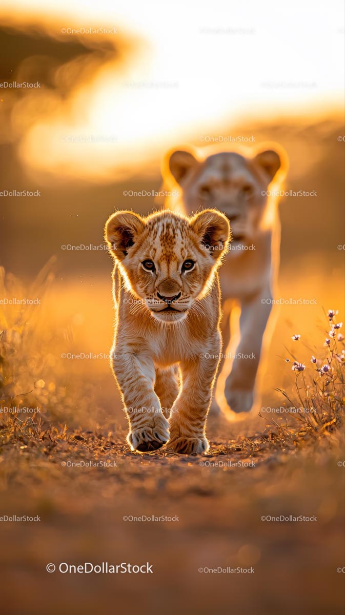 Zabawne lwiątka w złotej afrykańskiej sawannie