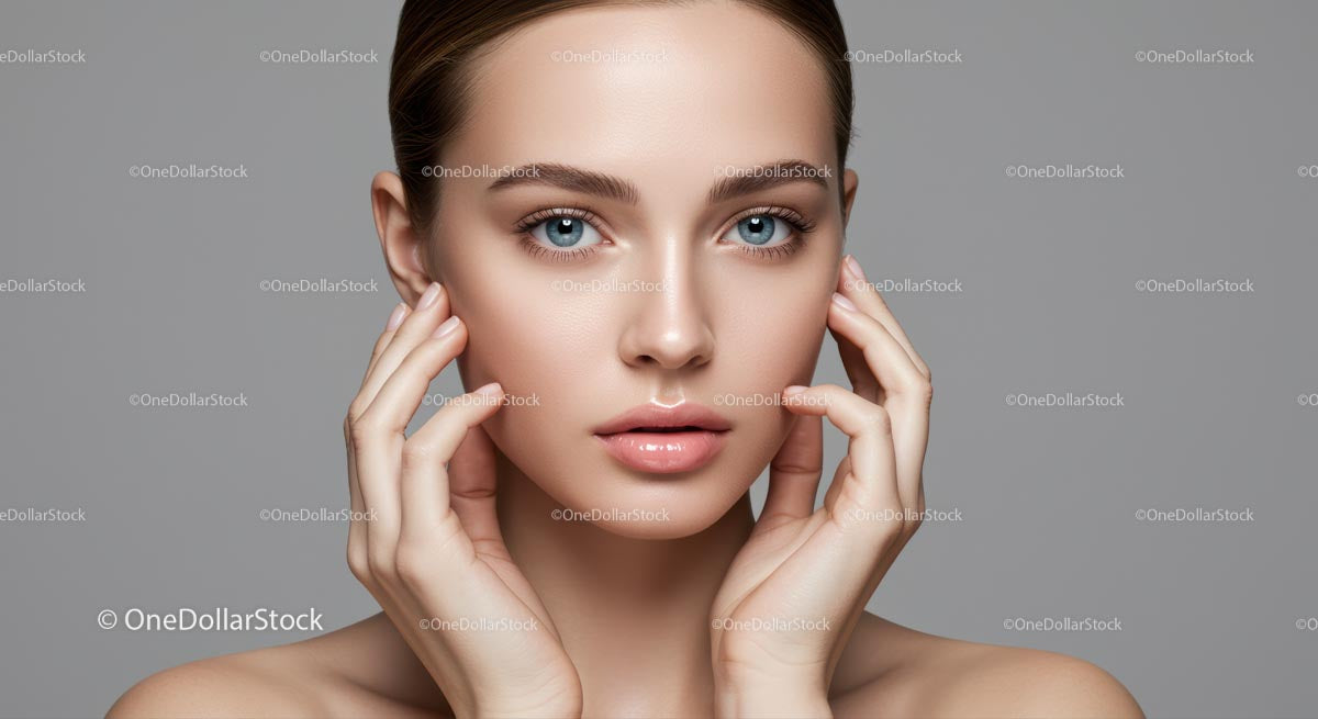 Portret kobiety o nieskazitelnej cerze i niebieskich oczach