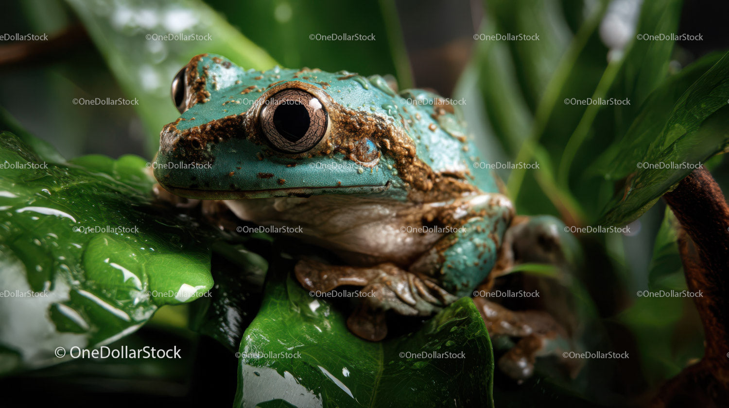 Żaba z lasu deszczowego na bujnych zielonych liściach w naturalnym środowisku