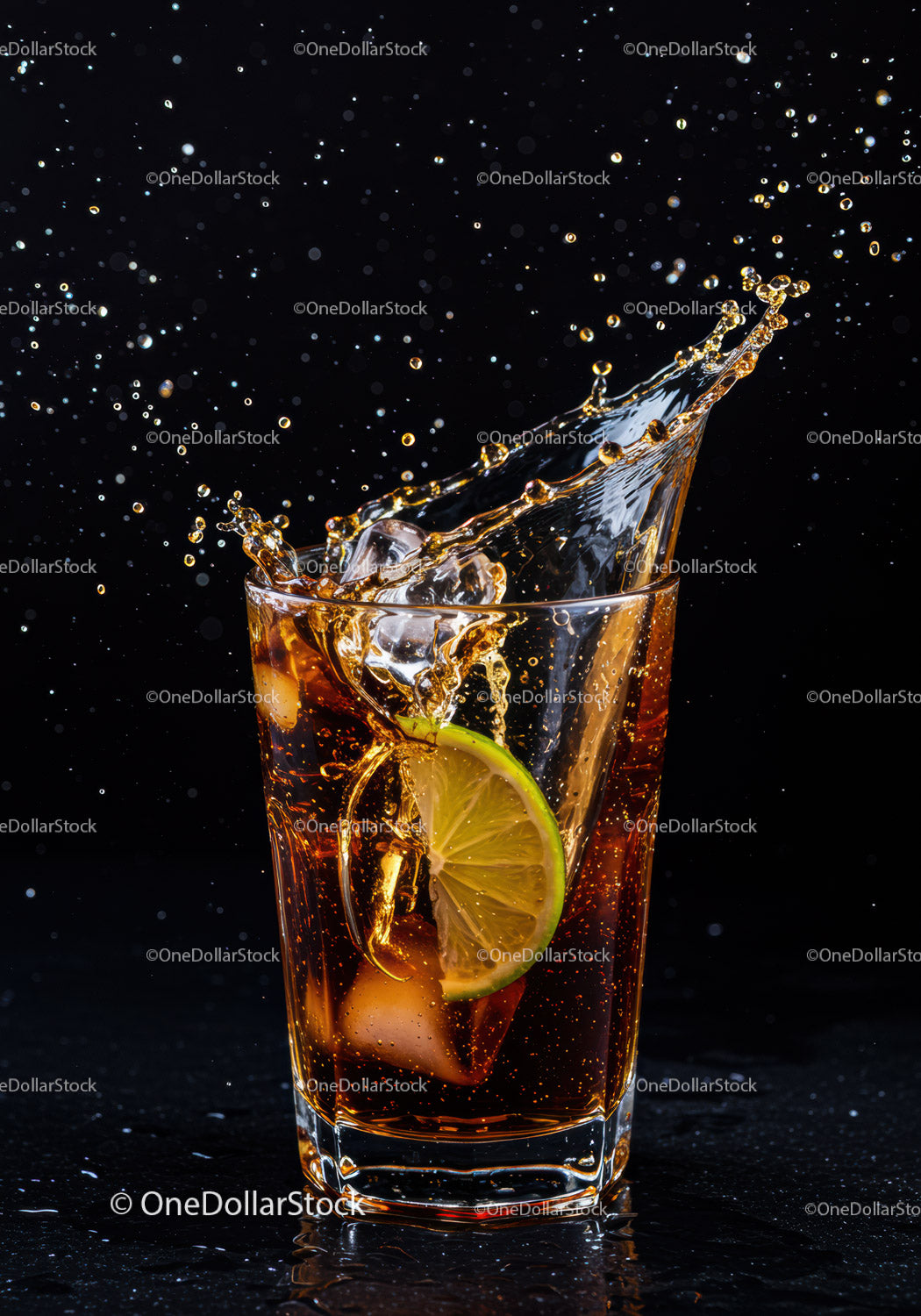 Orzeźwiająca mrożona cola z plasterkiem limonki w szklance