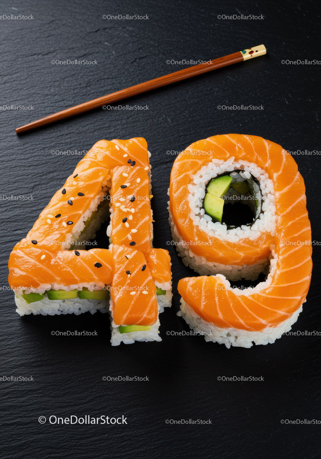 Rolki sushi z łososiem w kształcie cyfry czterdzieści dziewięć