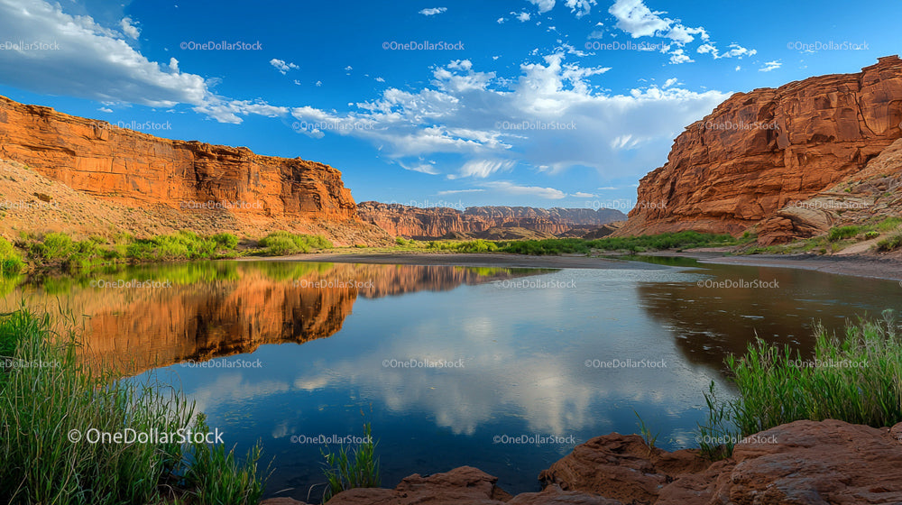Malownicza rzeka płynąca przez Red Rock Canyon pod błękitnym niebem