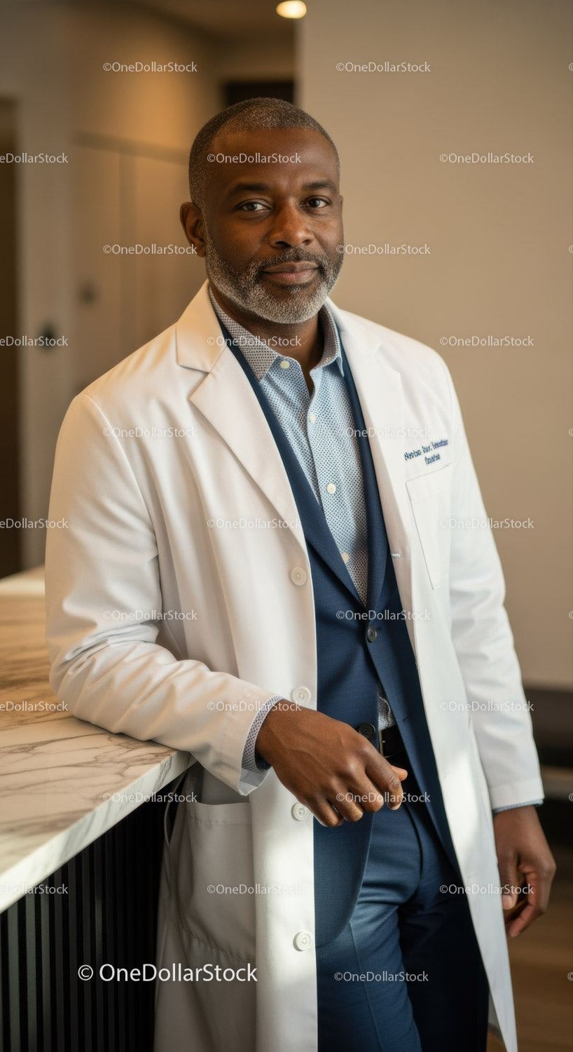 Starszy lekarz stojący w holu szpitala w celu uzyskania profesjonalnego wizerunku opieki zdrowotnej