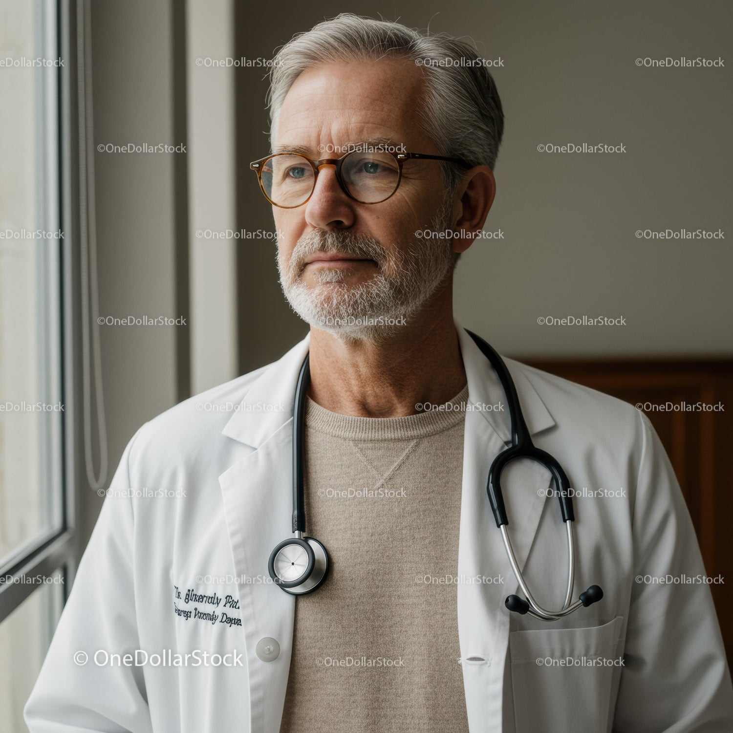 Starszy lekarz w okularach i ze stetoskopem w warunkach klinicznych