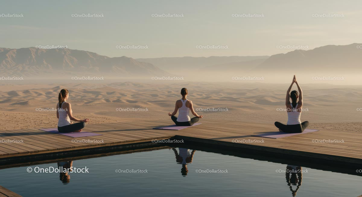 Spokojna poranna joga w spokojnym krajobrazie pustyni