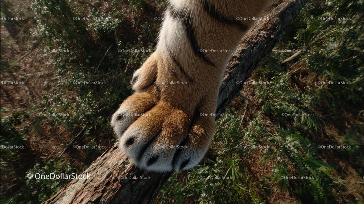 Tygrysia łapa chwytająca gałąź drzewa w dżungli