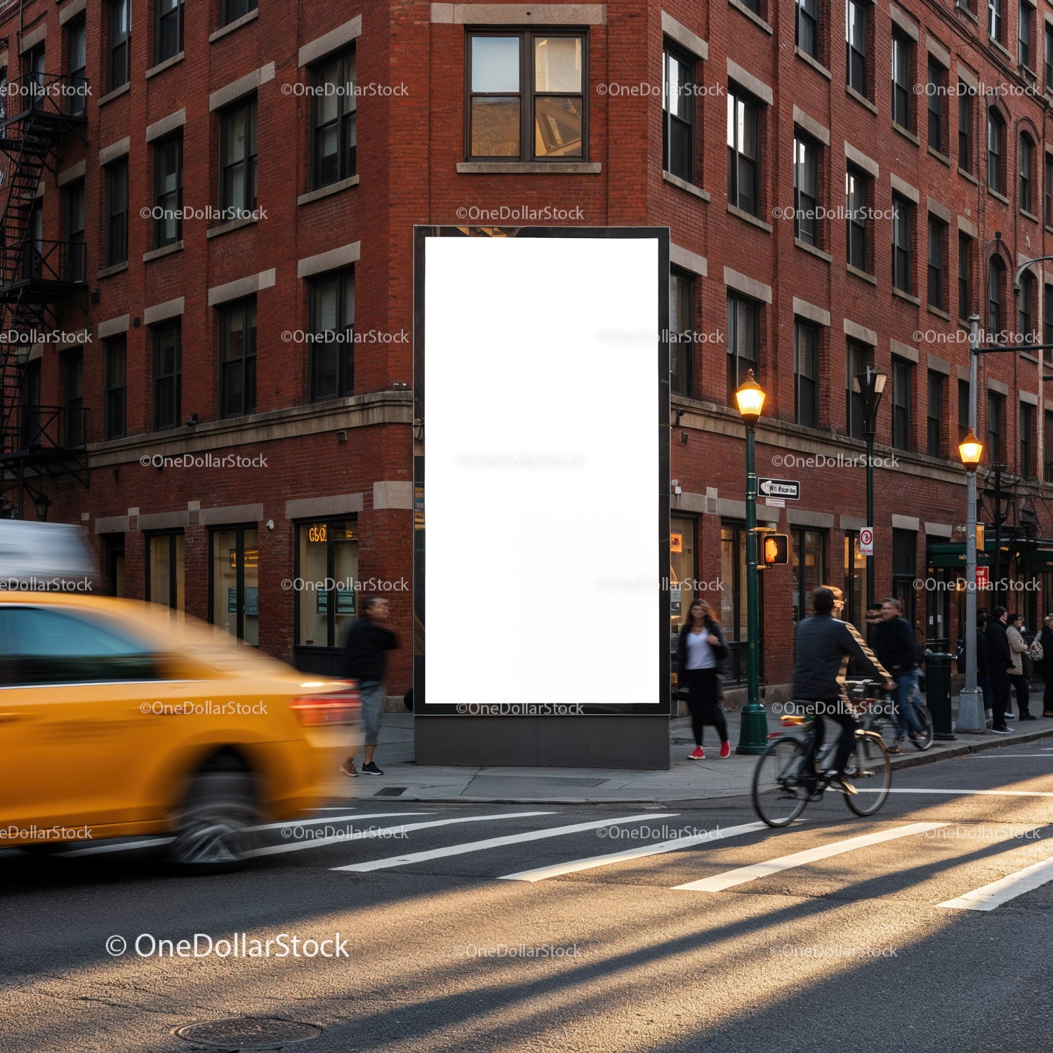 Scena uliczna w mieście z pustym billboardem i ruchem ulicznym