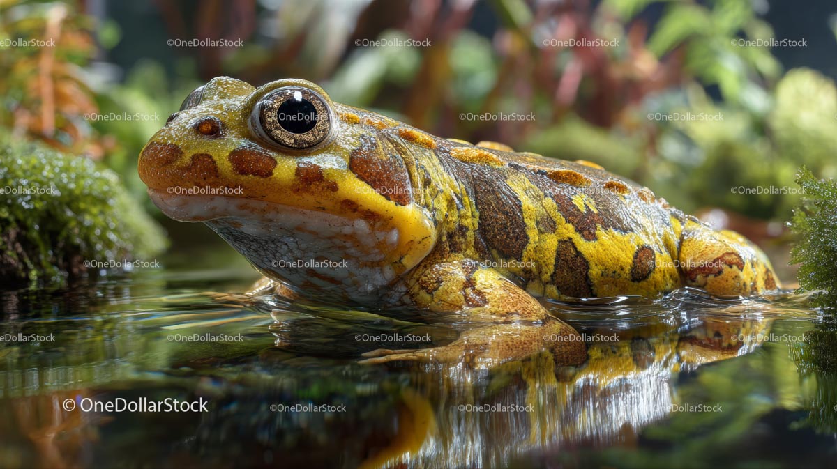 Żywa żaba plamista w naturalnym środowisku bagiennym