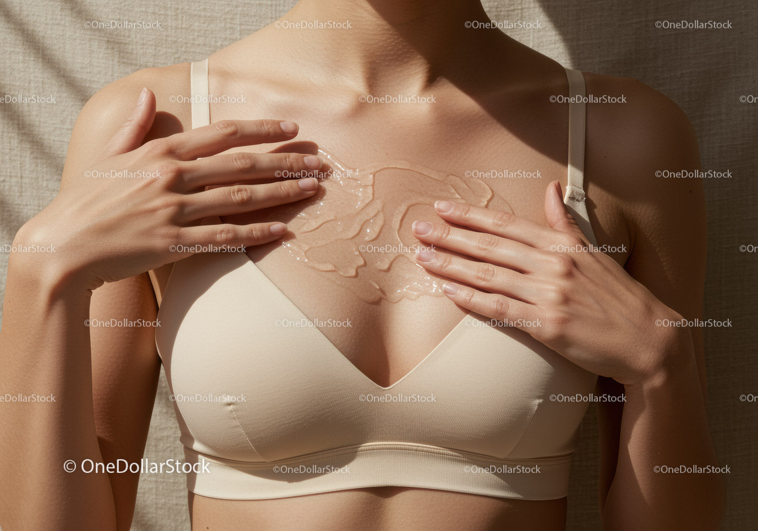Kobieta nakładająca żel aloesowy na klatkę piersiową w celu nawilżenia i odprężenia skóry