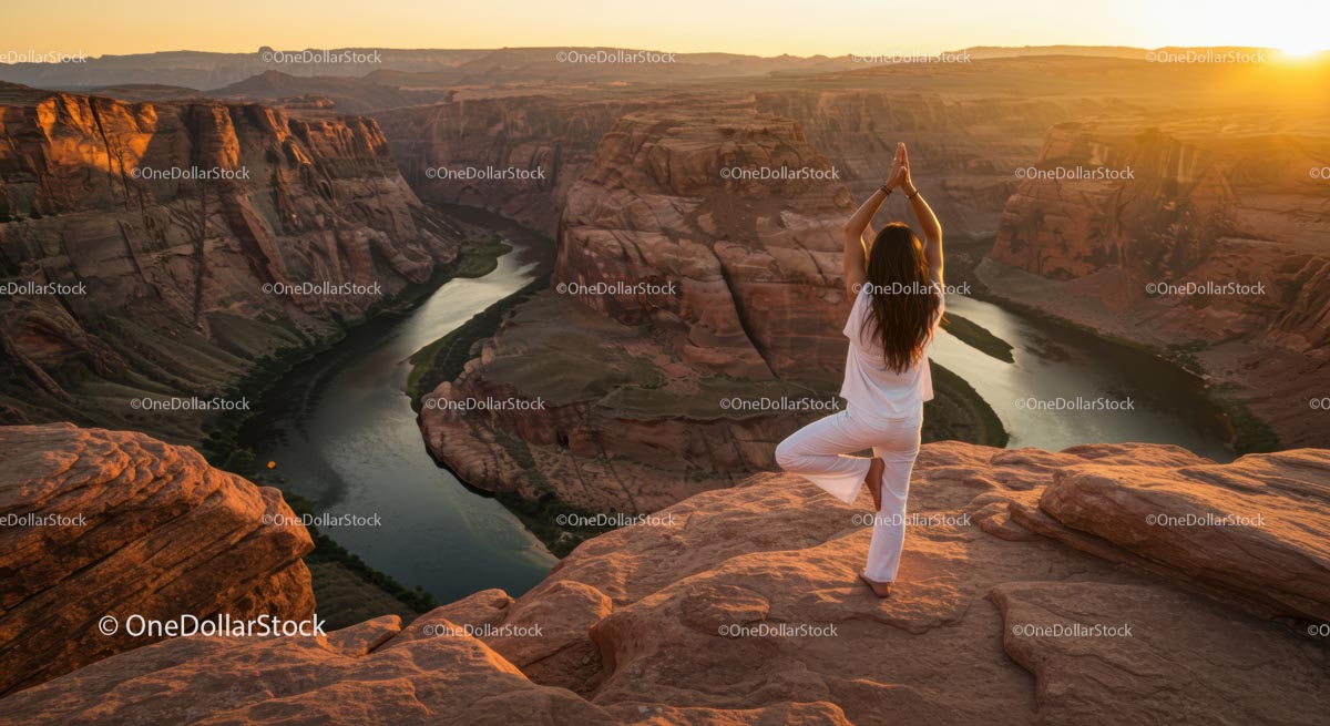 Kobieta ćwicząca jogę o wschodzie słońca nad malowniczym kanionem