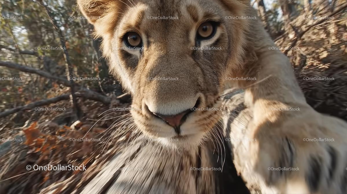 Młode lwiątko z intensywnym spojrzeniem w naturalnym środowisku
