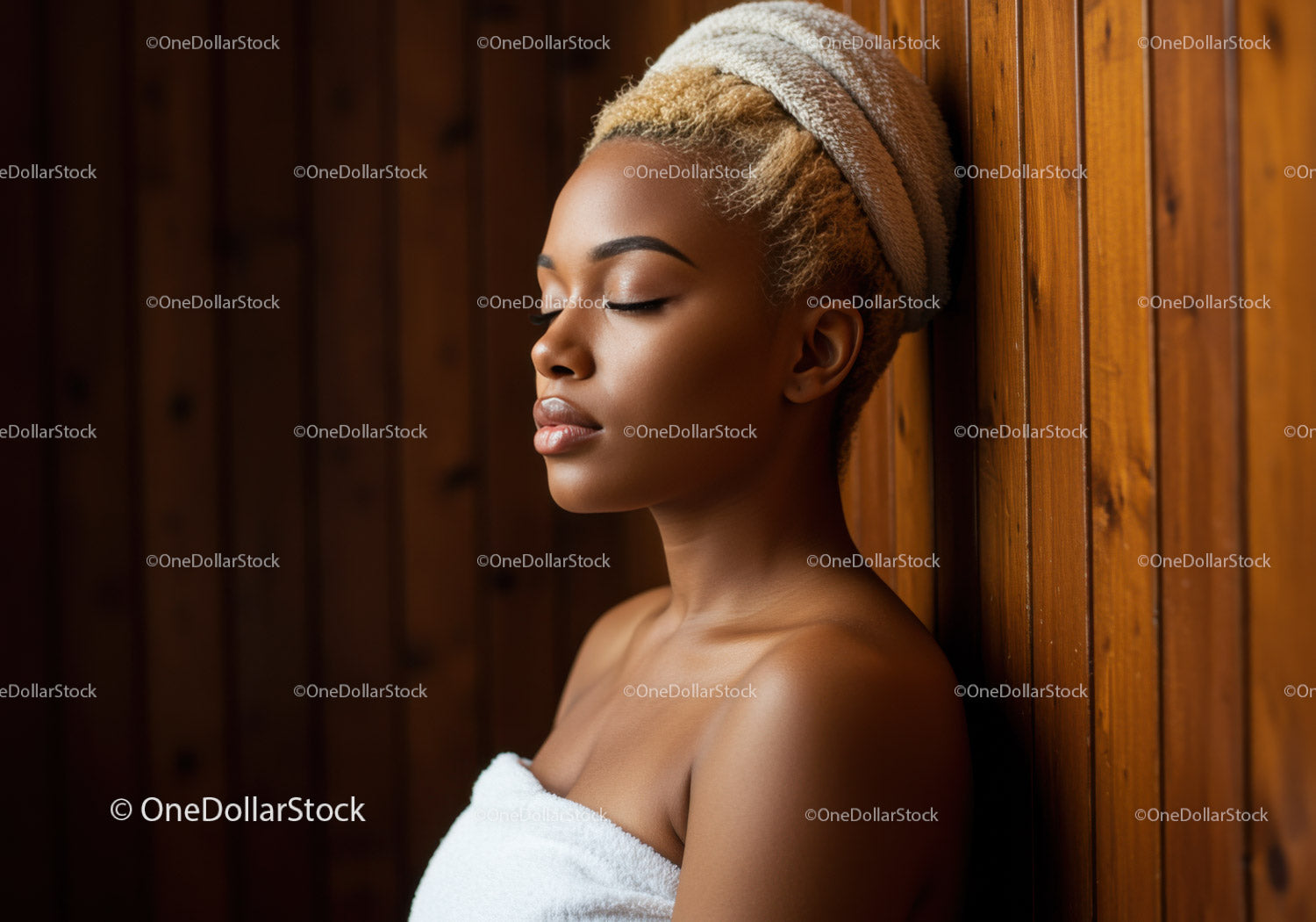 Młoda kobieta relaksująca się z ręcznikiem i drewnianym tłem podczas terapii spa