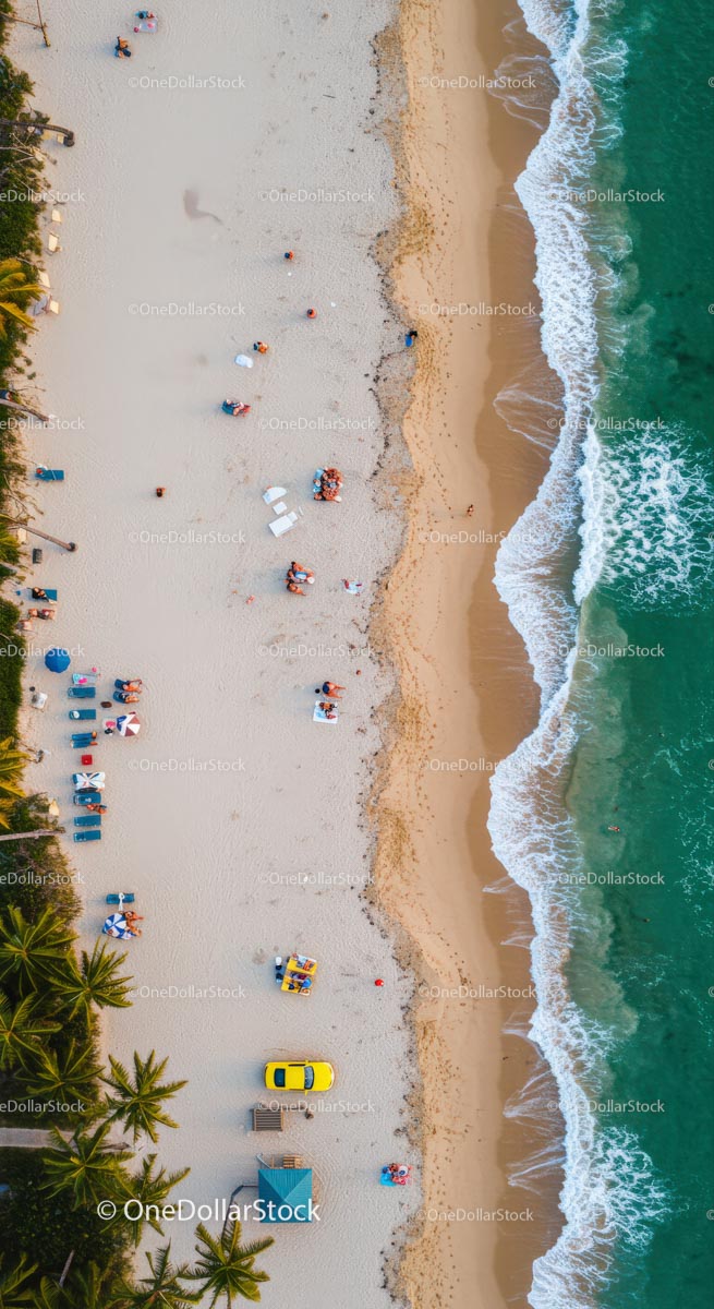 Aerial View of a Tropical Beach with Palm Trees and Turquoise Ocean