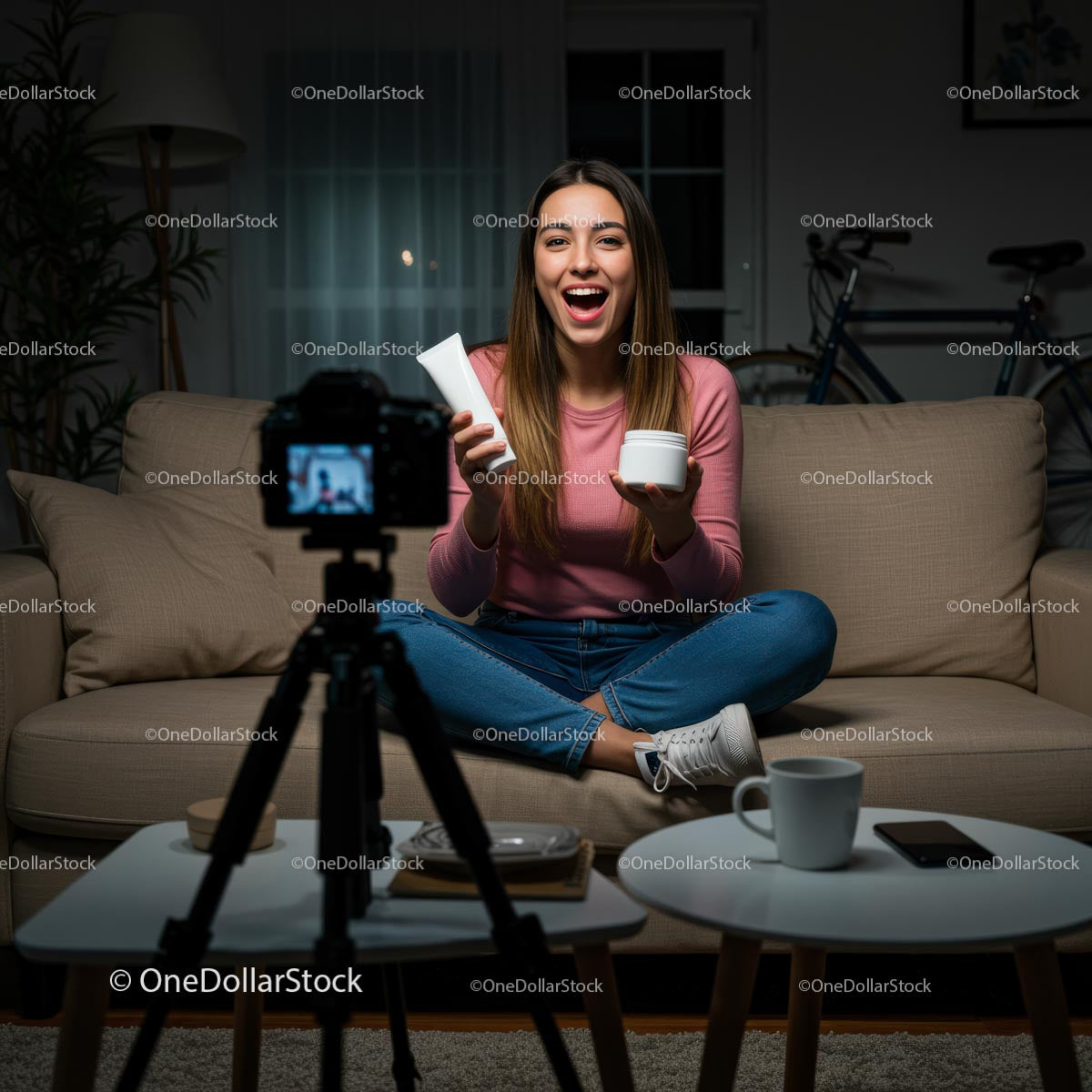 Beauty Vlogger Recording a Skincare Product Review at Home