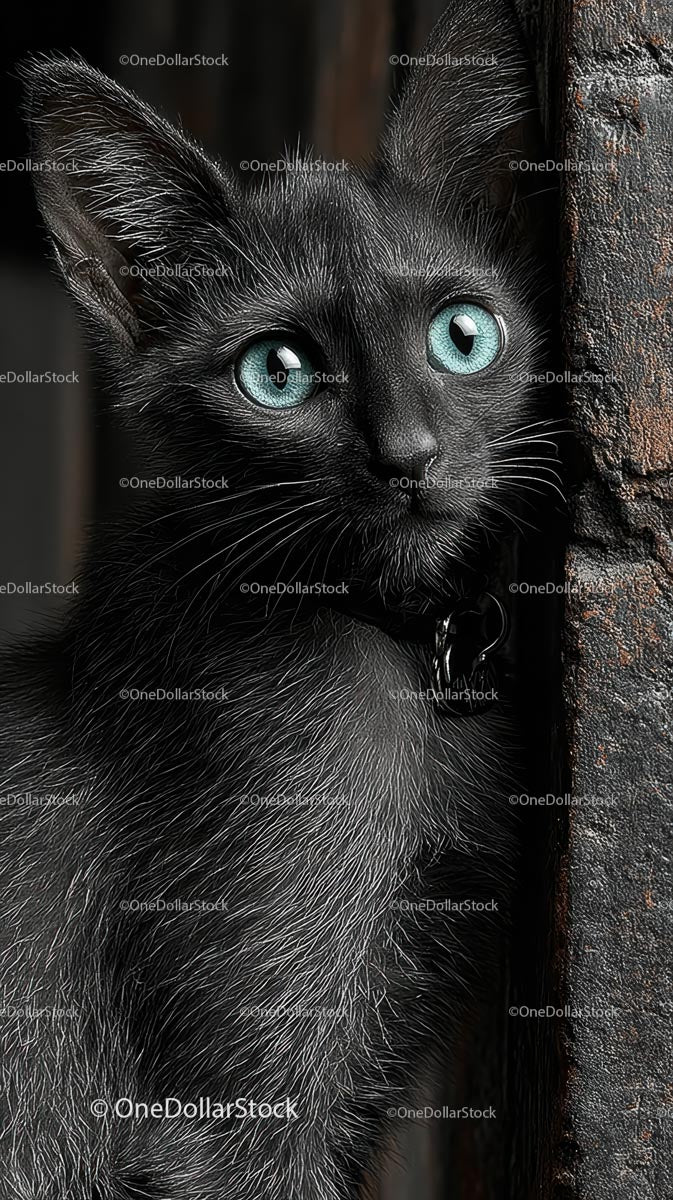 Black Cat with Striking Blue Eyes in Intimate Close-Up
