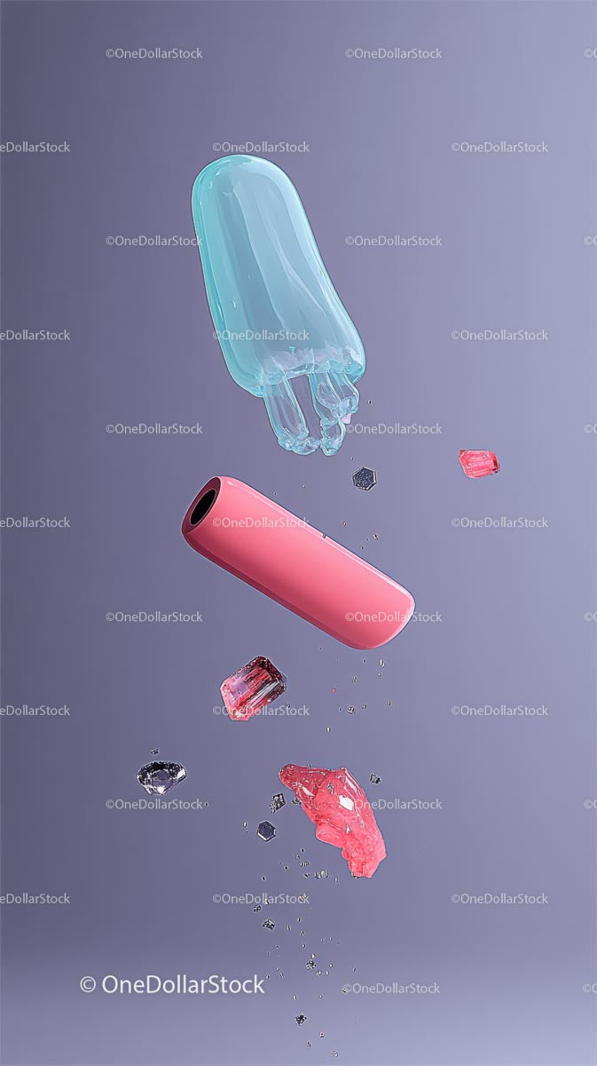 Blue and Pink Toothbrushes with Toothpaste and Bubbles in Air