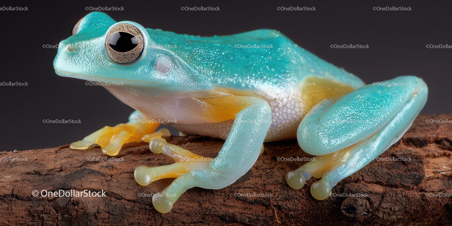 Blue Tree Frog on a Tree Branch in Tropical Rainforest
