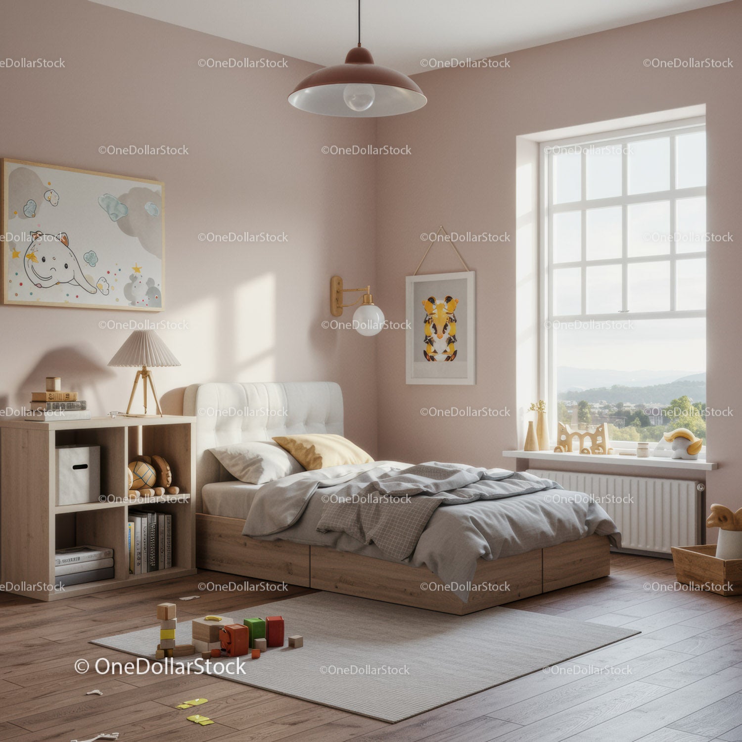 Bright Children Bedroom with Soft Bedding and Playful Wall Art