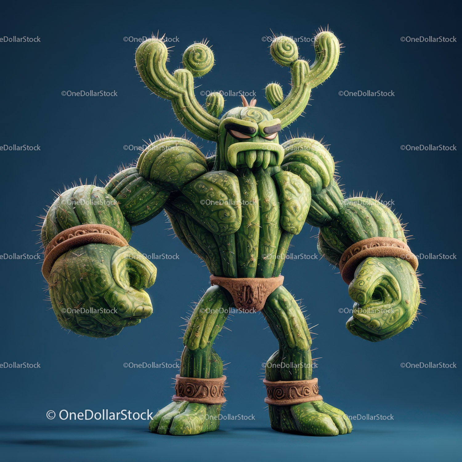 Cartoon Cactus Superhero Figurine with Muscular Body and Spiky Details