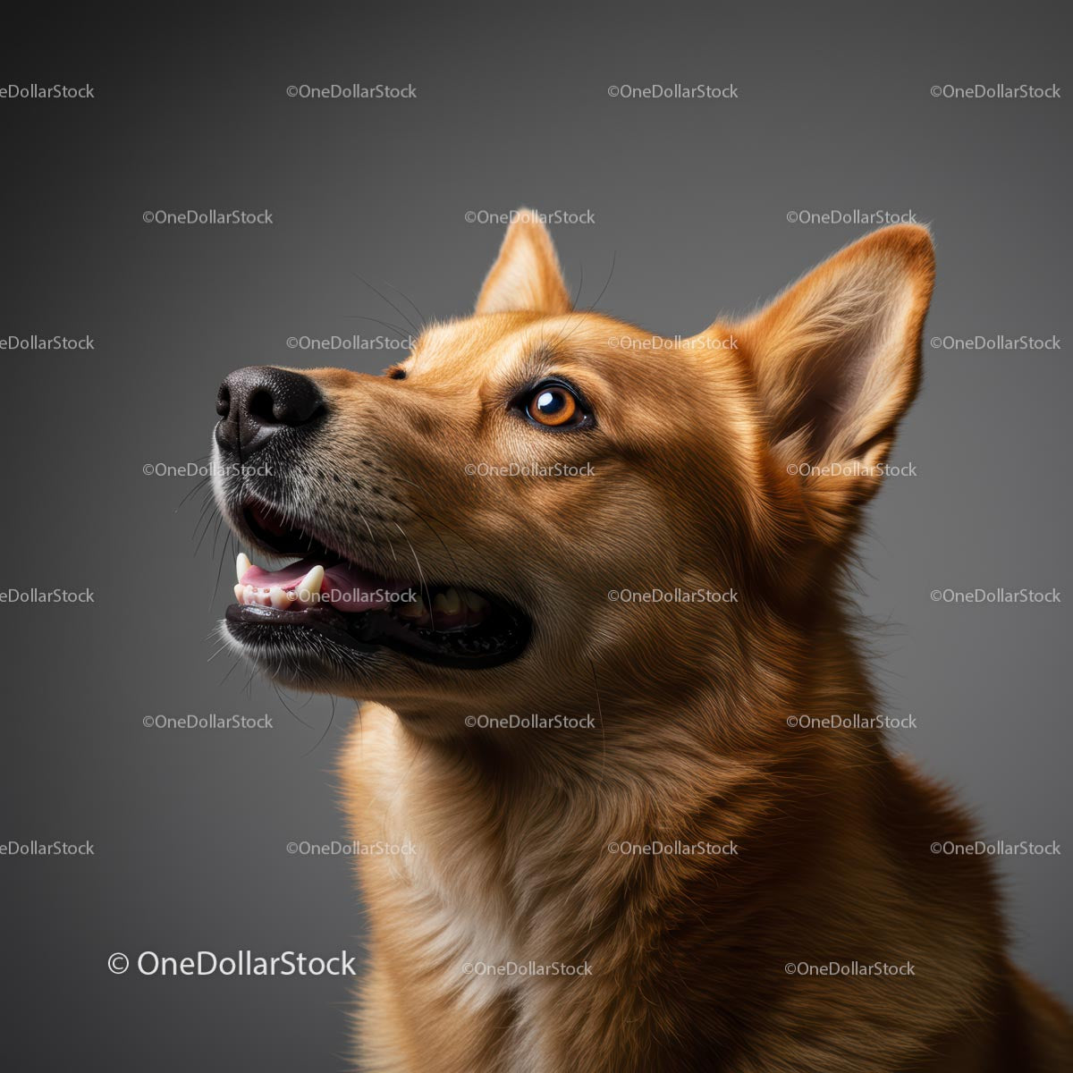 Cheerful Brown Dog with Fluffy Ears in Studio Portrait