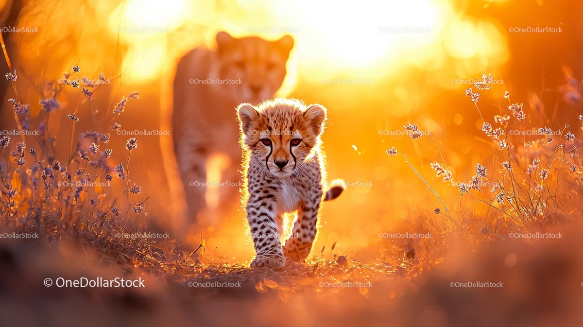 Cheetah Cub Strolling Through the Savanna at Sunset