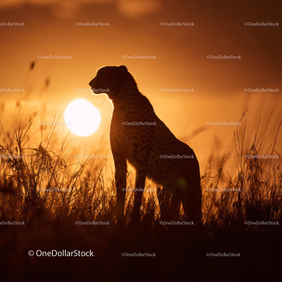 Cheetah Silhouette at Golden Sunset in African Savannah