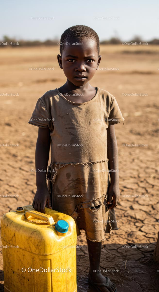 Child Holding a Yellow Water Container in Rural Setting