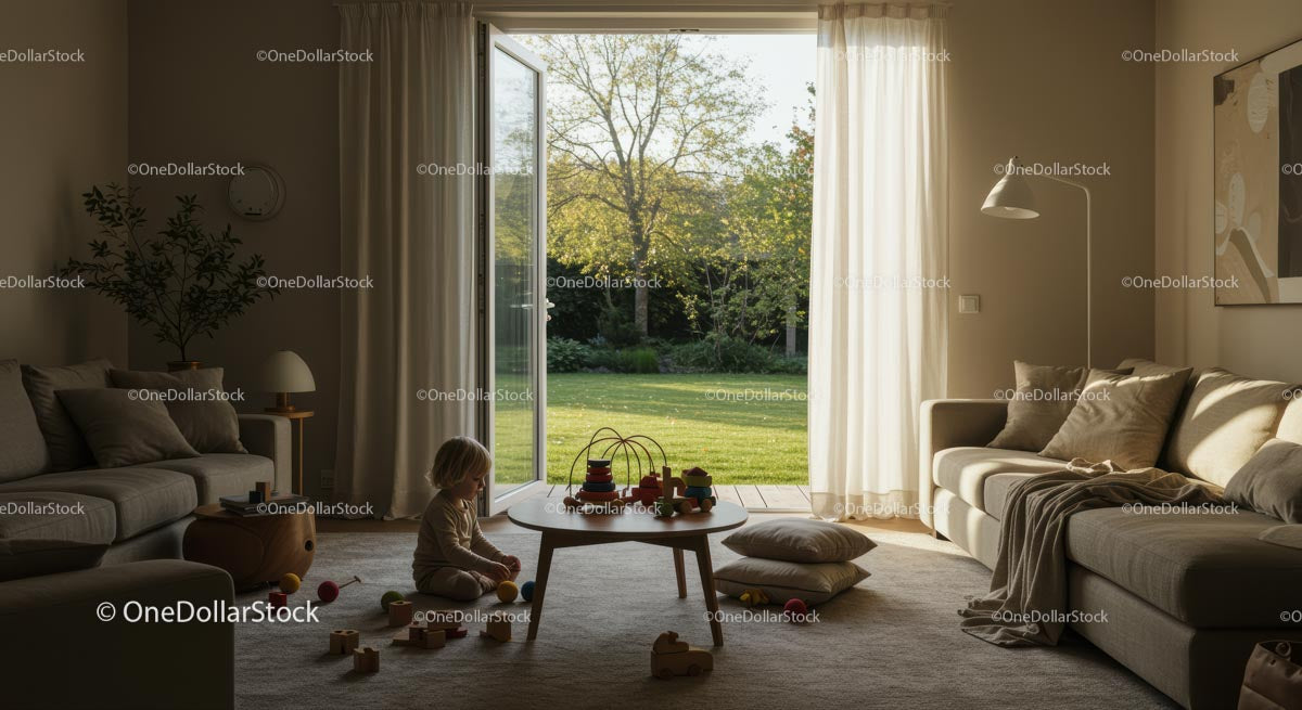 Child Playing in Sunlit Modern Living Room