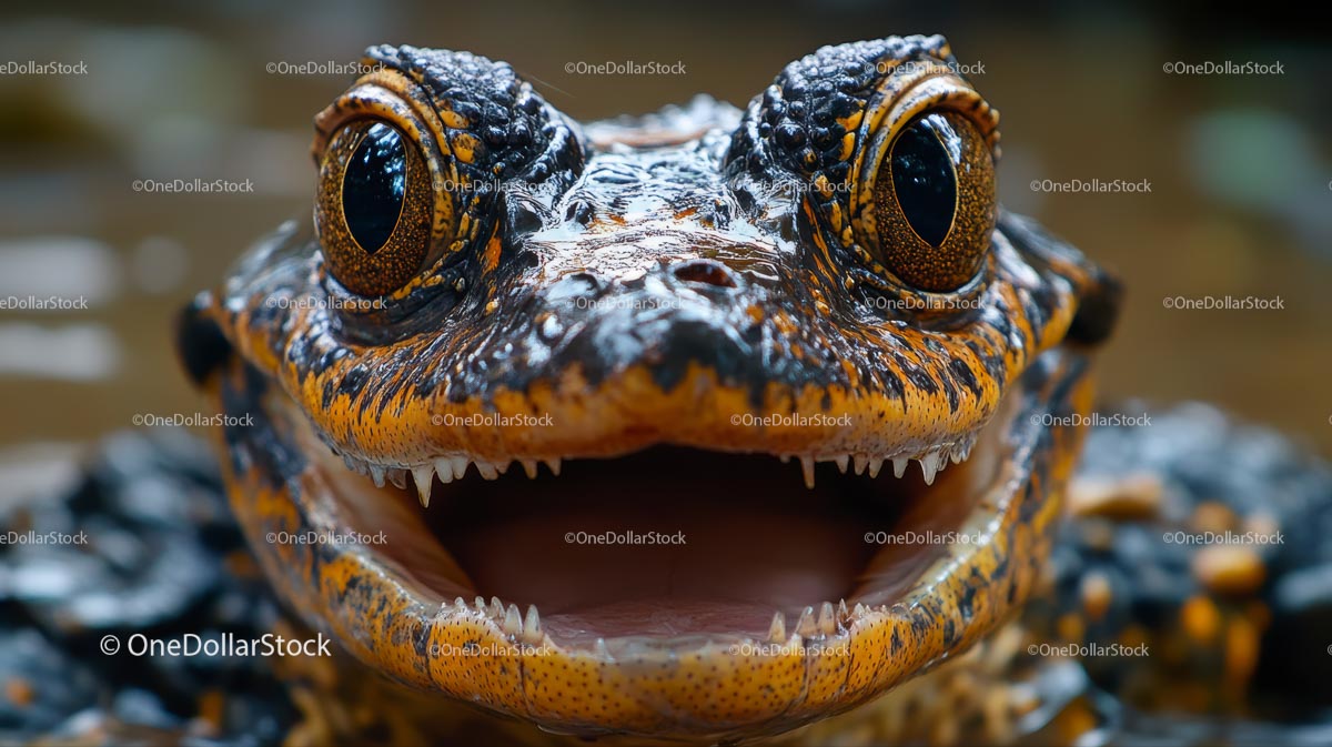 Close-Up of a Caiman with Open Mouth Showing Teeth
