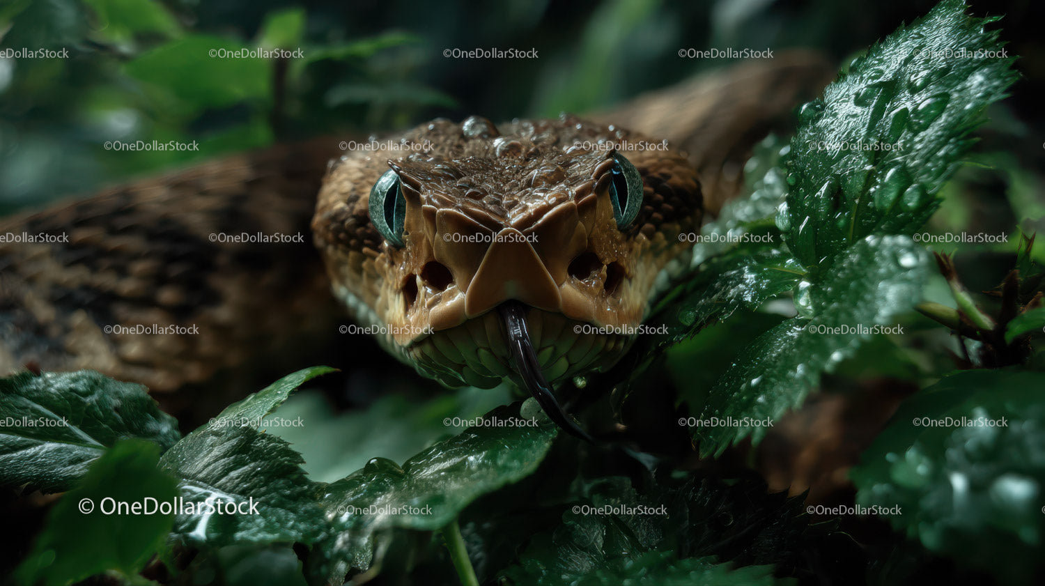 Close-up of a Camouflaged Jungle Snake with Green Eyes