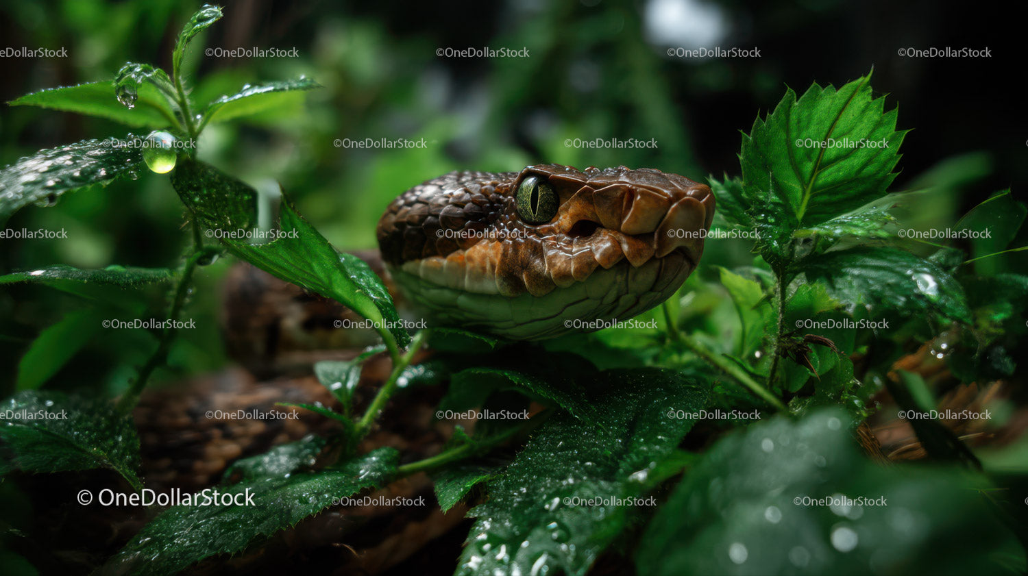 Close-up of a Camouflaging Snake Hidden Among Green Leaves