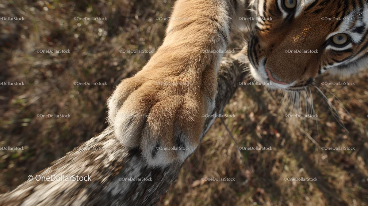 Close-Up of a Majestic Tiger's Paw Gripping a Branch