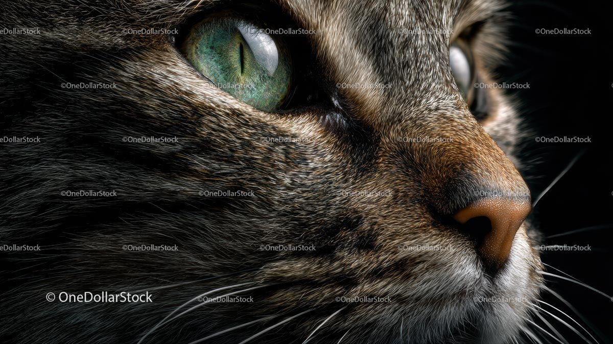 Close-Up of a Tabby Cat's Face with Green Eyes
