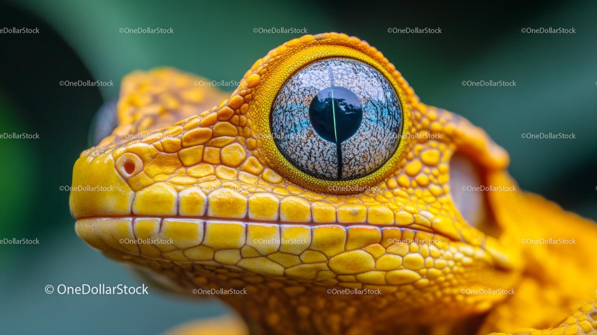 Close-up of a Vibrant Gecko Eye with Detailed Yellow Scales