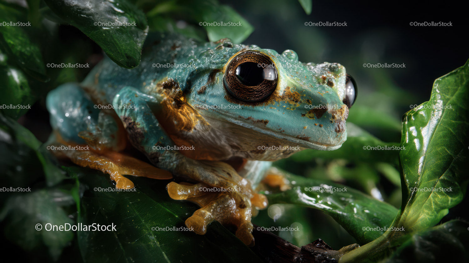 Close-Up of a Vibrant Green Tree Frog amidst Dense Green Foliage